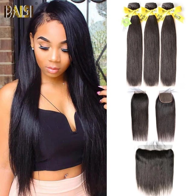 Before you begin to sew on your hair extensions, you want to make sure that you measure out two pieces of virgin hair that you must sew first. So first we will measure out a piece of hair, that starts here at our perimeter braid, and it goes directly all the way around our hairline, and ends here at our perimeter braid. Then next you're going to measure out your second piece of hair, that has to go around the base of your invisible part.