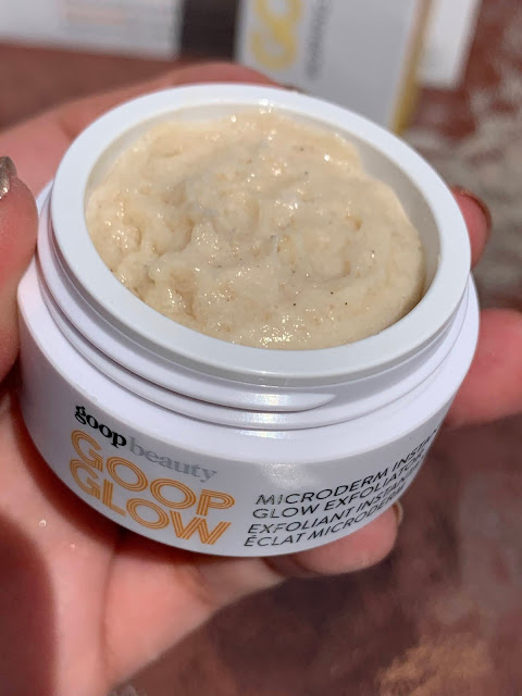 I think my favorite of these three was the microderm instant glow exfoliator. I use it once to twice a week. It has micro exfoliating minerals to polish dull skin. The mini size costs $42 and the standard size costs $125. It does feel like I went to the spa after using this product! I like using it to get my dead skin off. I'd recommend this if you're interested in trying GOOPGLOW. Look at this texture!! :)